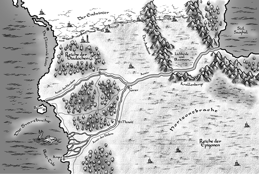 Es waren schweigsame Minuten. Die meisterhaft ausgebildeten Myrmidonen der Svartbucht und der flüsternden Küste waren für viele unangenehme Talente berüchtigt. Das Führen erbaulicher oder zumindest halbwegs erträglicher Konversation war allerdings nicht ihre Stärke.
