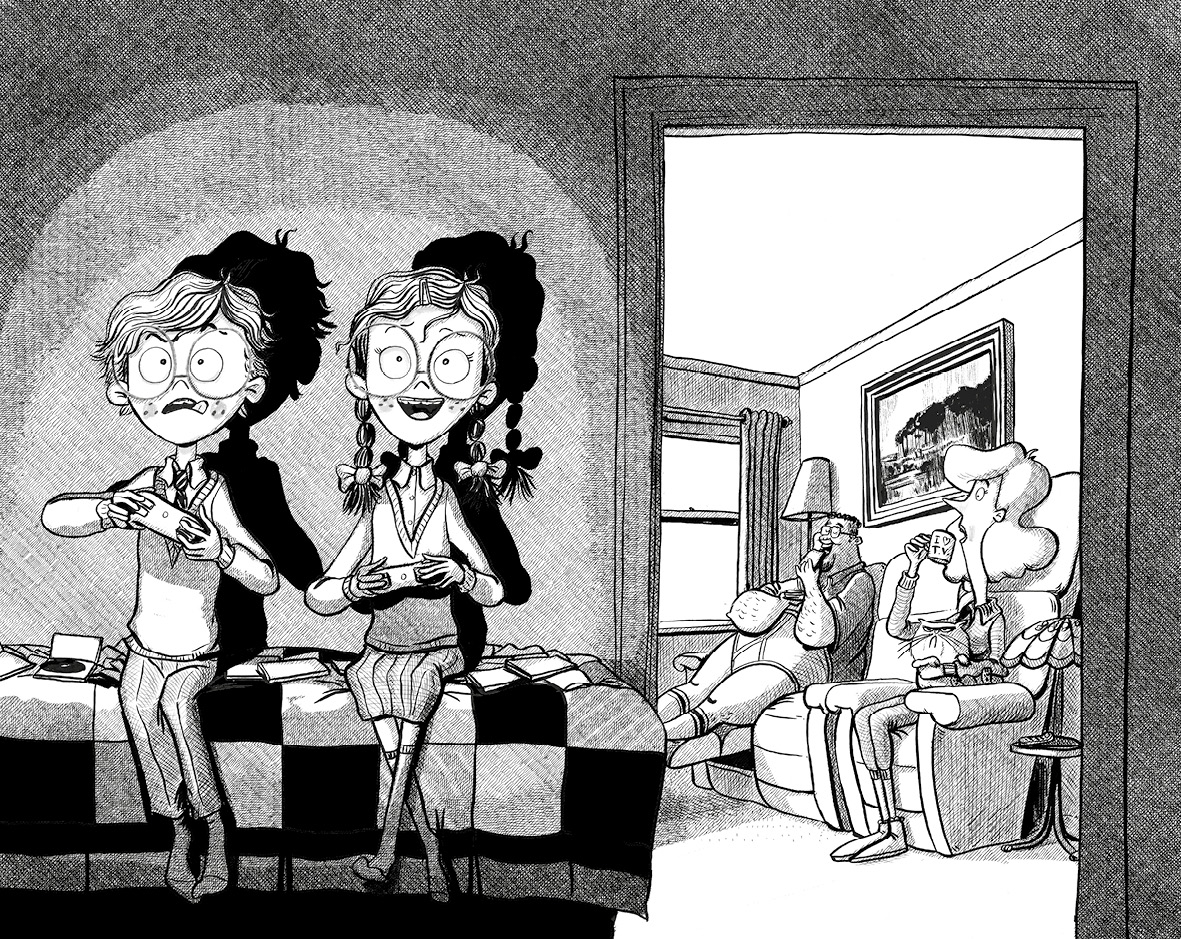 »MEIN SPIELECONTROLLER!!!«, schrie eine zweite Stimme. Ellies Stimme, um genauer zu sein. Sie klang sehr aufgebracht, und zwar aus gutem Grund. Als sie das Wohnzimmer betreten hatte, bot sich ihr folgender Anblick: ihre Mutter, die gerade mit leicht angeekelter Miene die Hand ausstreckte, um Ellies wertvollsten Besitz zwischen den mit einer Unterbuxe von 1987 bedeckten Gesäßbacken ihres Vater herauszuziehen.