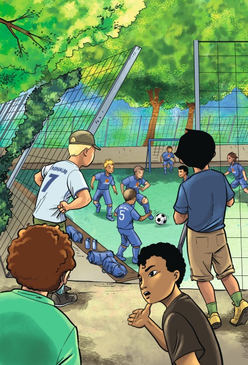 „Straßenkicker kicken in Straßenklamotten!“, beharrte Dimitri, der gerade dazukam. „Was soll das? Wieso tauchen die hier in Vereinsklamotten auf? Unser Sparri ist kein Vereinsplatz!“