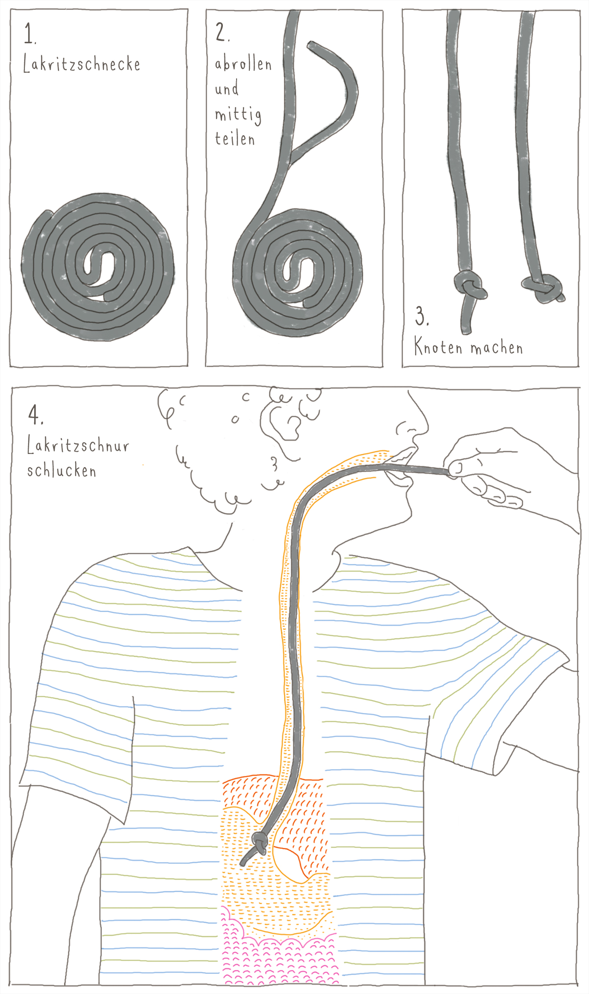 »Ich frag dich jetzt noch ein allerletztes Mal«, ihre Stimme war ernst, ohne Betonungen flog der Satz heraus, »hast du diese drei Hähnchenschnitzel wirklich, also ich meine wirklich, für mich geholt?« Bei dem Wort wirklich hatte sie sich beim W so überdeutlich mit den hasengroßen Schneidezähnen in die Unterlippe gebissen, dass die Zahnkanten nun wie die Feuerkuppen von Streichhölzern ein klein wenig vom Lippenstift rot gefärbt worden waren. Plötzlich schien es hier um so viel mehr als die drei mittlerweile erkalteten und von mir immer noch wie von einem fossilen, aus dem Fels herausgeklopften Steinzeitkellner dargebotenen Hähnchenschnitzelleichen zu gehen. Ihre Augen hatten sich verändert. Unsicher und gespannt sah sie mich an. Ich versuchte, mich zu konzentrieren. Was war die richtige Antwort?