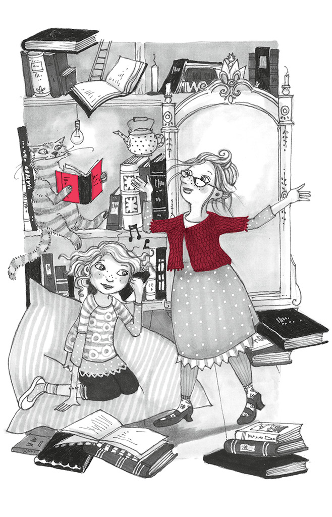 Für Frau Eule war es das Selbstverständlichste auf der Welt, dass die Bücher in ihrem Laden ein Eigenleben hatten. Kochbücher verströmten plötzlich Gerüche, Liederbücher ließen Musik erklingen und aus der Krimi-Ecke ertönte häufiger mal Sirenengeheul. Auch ich hatte mich mittlerweile daran gewöhnt, dass Buchstaben durch die Gegend flogen und irgendwelche Wörter oder Sätze bildeten. Denn das hier war kein gewöhnlicher Buchladen, sondern Frau Eules zauberhafter Wunschbuchladen.