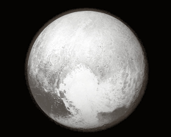 Am 14. Juli 2015 sandte die NASA-Sonde New Horizons dieses historische Bild von Pluto zur Erde, das erste, auf dem Merkmale des Zwergplaneten deutlich zu sehen sind.