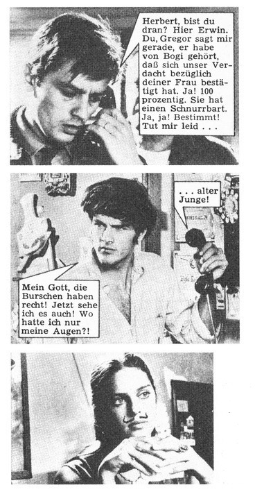 Was bisher geschah: Herbert ist seit zwei Wochen mit Anne verheiratet, doch er wird das Gefühl nicht los, daß in seiner jungen Ehe etwas nicht stimmt. Er wendet sich an seine Freunde Bogi, Gregor und Erwin. Diese äußern einen Verdacht, den Herbert anfangs brüsk zurückweist. Daraufhin schaltet Bogi einen Privatdetektiv ein. Dieser hat ihm gerade das Ergebnis seiner Ermittlungen mitgeteilt, doch Bogi wagt es nicht, Herbert selbst zu unterrichten. Statt dessen ruft er Gregor an …
