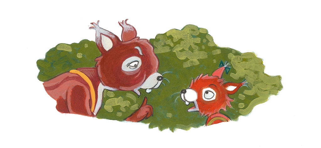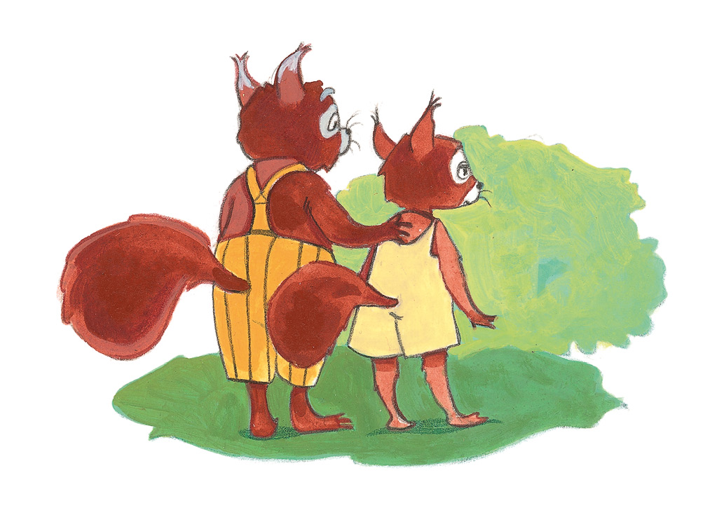 Elli, ein kleines, struppiges Eichhörnchen aus der altehrwürdigen, überall für Anständigkeit und tadelloses Verhalten bekannten Eichhörnchen-Familie Rotfell, versteckte schnell die selbst gebaute Schleuder hinter ihrem Rücken. Sie schob den Beutel mit den Nüssen und Bucheckern, die ihr als Munition dienten, unter einen herabhängenden Ast und versuchte, überrascht auszusehen.