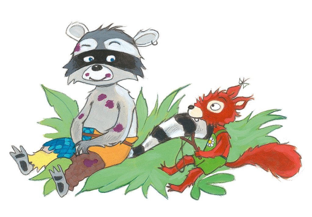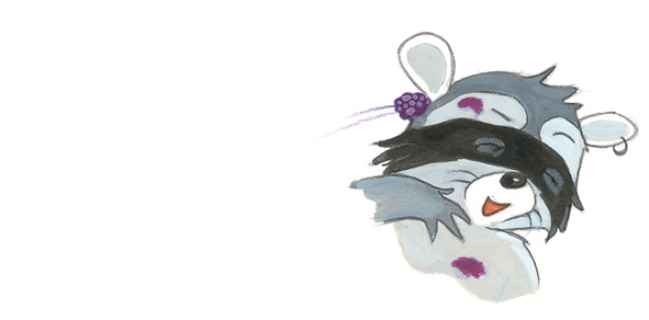 »Ich hab ’ne super Idee!«, rief der Waschbär. »Du flitschst mir die Brombeeren zu, und ich versuche, sie mit dem Mund zu fangen!«