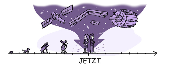 Es gibt noch eine ungeheure Menge von Entdeckungen zu machen. Tatsächlich erleben wir die Anfänge eines vollkommen neuen Zeitalters der Entdeckungen. Wir treten in eine Epoche ein, die uns wahrscheinlich ein nie da gewesenes Verständnis des Universums erschließen wird. Auf der einen Seite wissen wir sehr wenig (fünf Prozent, erinnern Sie sich?), daher haben wir einige Ideen, welche Fragen zu stellen sind. Andererseits entwickeln wir tolle neue Forschungswerkzeuge – riesige Teilchenbeschleuniger, Gravitationswellendetektoren und Teleskope –, die uns helfen werden, die Antworten zu finden. Und das alles passiert genau jetzt.