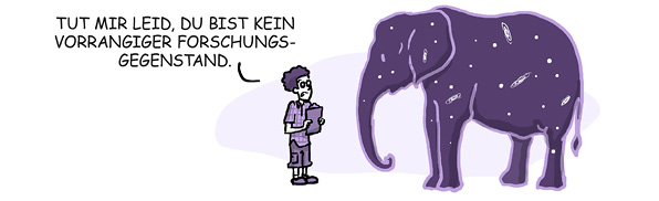 Um Fortschritte zu erzielen, müssen wir einige spezifische Ideen untersuchen, ihre Konsequenzen erkunden und Experimente entwerfen, mit denen wir sie überprüfen können. Es ist durchaus möglich, dass Dunkle Materie aus kosmischen lilafarbenen Tanzelefanten besteht, aber da sich diese Theorie schwerlich überprüfen lässt, ist sie kein vorrangiger Forschungsgegenstand.8