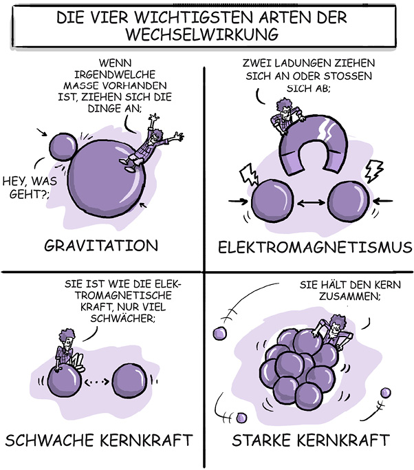 Grundsätzlich gibt es für Materie vier Möglichkeiten zur Wechselwirkung: