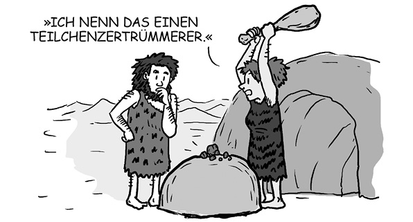 In dem Universum, das wir kennen und lieben, scheinen die Dinge um uns herum aus winzigen Teilchen zu bestehen. Nach Jahrtausenden des Denkens und Forschens besitzen wir heute eine sehr elegante Theorie der Materie.3 In der Zeit von Ooks und Groogs ersten Experimenten bis heute sind wir weit über das Periodensystem hinausgelangt und haben tief in das Atom hineingeblickt.