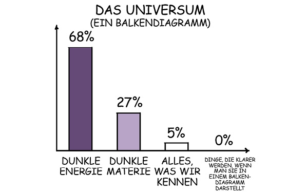 Hier ist ein Balkendiagramm von der Masse und Energie des Universums, wie wir es kennen: