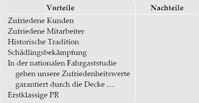Gareth aber ließ sich nicht beirren, und während die Monate ins Land gingen und die Idee immer mehr Befürworter fand, versuchte Gareth auf direktem Weg an Pauls Geschäftssinn zu appellieren. Da er wusste, dass sein Vorgesetzter ein Mann der Fakten, Zahlen und Tabellen war, nahm sich Gareth die Zeit, eine umfassende Liste der Vor- und Nachteile einer Bahnhofskatze zusammenzustellen:
