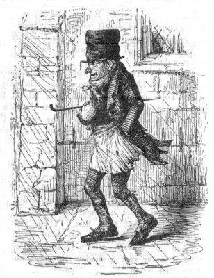 They called him Trotty from his pace, which meant speed if it didn’t make it. He could have walked faster perhaps; most likely; but rob him of his trot, and Toby would have taken to his bed and died. It bespattered him with mud in dirty weather; it cost him a world of trouble; he could have walked with infinitely greater ease; but that was one reason for his clinging to it so tenaciously. A weak, small, spare old man, he was a very Hercules, this Toby, in his good intentions. He loved to earn his money. He delighted to believe—Toby was very poor, and couldn’t well afford to part with a delight—that he was worth his salt. With a shilling or an eighteenpenny message or small parcel in hand, his courage always high, rose higher. As he trotted on, he would call out to fast Postmen ahead of him, to get out of the way; devoutly believing that in the natural course of things he must inevitably overtake and run them down; and he had perfect faith—not often tested—in his being able to carry anything that man could lift.