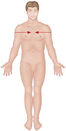 Figura 1.26. Retracción: movimiento hacia atrás en el plano transversal, como cuando se echa la cintura escapular hacia atrás, al estilo militar.