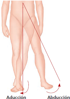 Rotación lateral: girar hacia fuera, lejos de la línea media.