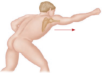 Figura 1.25. Protracción: movimiento hacia delante en el plano transversal, como, por ejemplo, la protracción de la cintura escapular al redondear el hombro.