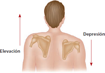 Figura 1.27. (a) Elevación: movimiento de una parte del cuerpo hacia arriba, a lo largo del plano frontal, como, por ejemplo, al elevar la escapula encogiendo los hombros.