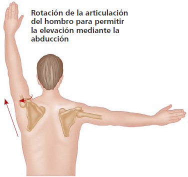 Nota: para que la abducción del brazo suba por encima del hombro (elevación mediante abducción), la escápula debe rotar en su eje para girar la cavidad glenoidea hacia arriba (ver Figura 1. 27(b)).