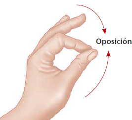 Figura 1.28. Oposición: movimiento específico de la articulación en silla de montar del pulgar; permite tocar la punta del pulgar con las yemas de los dedos de la misma mano.
