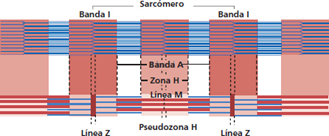 Figura 2.2. Miofilamentos de un sarcómero. Un sarcómero está unido a ambos extremos mediante la línea Z.