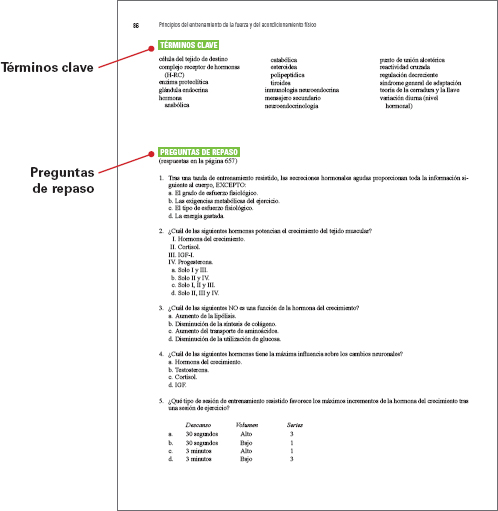 Síntesis, almacenamiento y secreción de hormonas • El músculo como destino de las interacciones de las hormonas • Papel de los receptores de hormonas en la mediación de los cambios hormonales • Categorías de hormonas • Ejercicio resistido con grandes cargas e incremento de la secreción de hormonas • Mecanismos de las interacciones hormonales • Cambios hormonales en la sangre periférica • Adaptaciones del sistema endocrino • Hormonas anabólicas primarias • Hormonas de las glándulas suprarrenales • Otras consideraciones sobre las hormonas • Conclusión • Ayudas al aprendizaje |