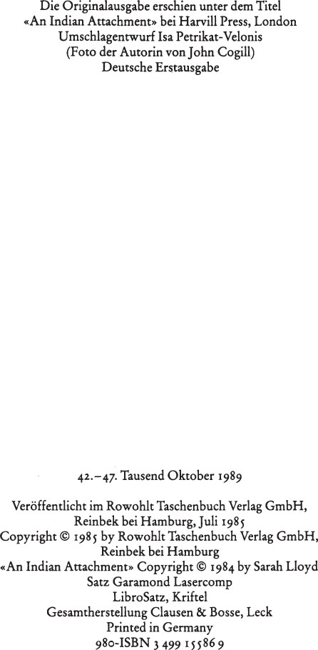 Den ersten Hinweis darauf, daß ich nach Hause kommen würde, hatte ich bei meinem Abflug vom Flughafen Heathrow erhalten, wo ich in eine Gruppe von Indern geraten war. Der sofortige Effekt: Ich lächelte und entspannte mich. Das hätte mir in englischer Gesellschaft niemals passieren können; im Gegenteil, ich kann in eine Gaststätte, ein Restaurant oder einen Supermarkt gehen und mich überwältigend einsam fühlen wie eine Ausländerin.