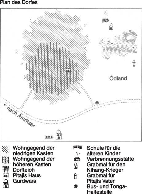 Jungli schämte sich ein bißchen für sein ländliches Kachcha-(einheimisch)Haus. Er wollte, daß ich allen Komfort hatte, an den ich gewöhnt war. Er selbst zog Kachcha-Häuser vor, ebenso wie Pitaji. Mir ginge es auch so, versicherte ich ihm. Ich fand das Haus einfach reizend. Sanfte Farben und weich gerundete Mauern von einer einfachen Schönheit. Was das Leben betraf, das ich gewohnt war, wie immer es auch ausgesehen hatte – es wäre für mich das Letzte gewesen, was ich mir von einem Pandschab-Dorf erwartete oder erhoffte. Die meisten Dörfler, die einmal die «Zivilisation» gesehen hatten, wollten für sich selbst das gleiche: Pakka – im westlichen Stil gebaute Häuser mit viel Zement, verglasten Fenstern, eingebauten Wandregalen und anderen nutzlosen, luxuriösen Prestigegegenständen, die in den Dörfern selbst niemals hergestellt oder für notwendig befunden worden waren.