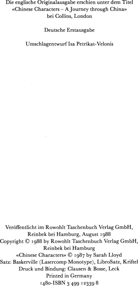 Wenn ich könnte, würde ich gern jene Chinesen mit Namen nennen und ihnen danken, die mir vertraut haben und ihre Geschichten erzählten. Aber ich kann ihnen nur im Herzen danken. Es gab Chinesen, die wegen antikommunistischer Überzeugungen und entsprechenden Äußerungen Ausländern gegenüber in Arbeitslagern festgehalten oder erschossen worden sind. Mag solches unter dem gegenwärtigen Regime auch unwahrscheinlich sein, könnte doch bei einem politischen Umschwung die Sicherheit der Betroffenen gefährdet sein. Außerdem möchte ich meinem Lektor und meinem Agenten danken, meinen Freunden in Hongkong, die mich untergebracht haben, und dem Ausländerexperten Jan, der ebenfalls einen andern Namen erhalten mußte. Von den Namen, die in diesem Bericht häufiger erscheinen, ist (mit Ausnahme bekannter politischer Gestalten) nur der von Rosy der wahre.