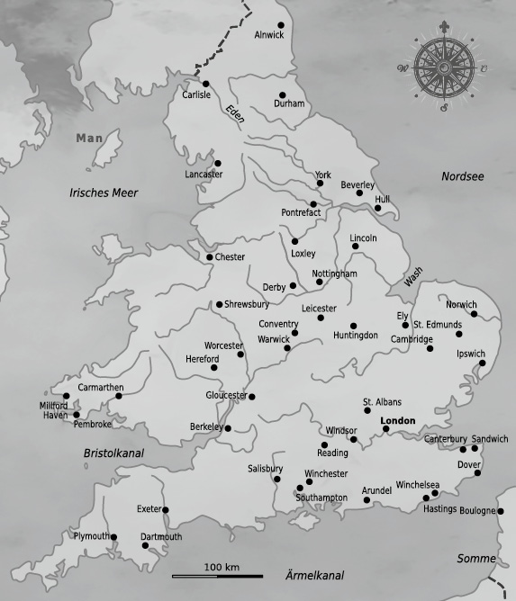 »Ein Mann, der schon einen König in den Tod getrieben und dafür gesorgt hat, dass ich jahrelang in deutschen Kerkern schmachten musste«, belehrte Ranulph de Blondeville seinen Neffen. »Ganz zu schweigen von den vielen anderen Dingen, die vielleicht die Geschicke Englands verändert haben und auf sein Konto gehen. Ihn dürfen wir unter keinen Umständen außer Acht lassen.«