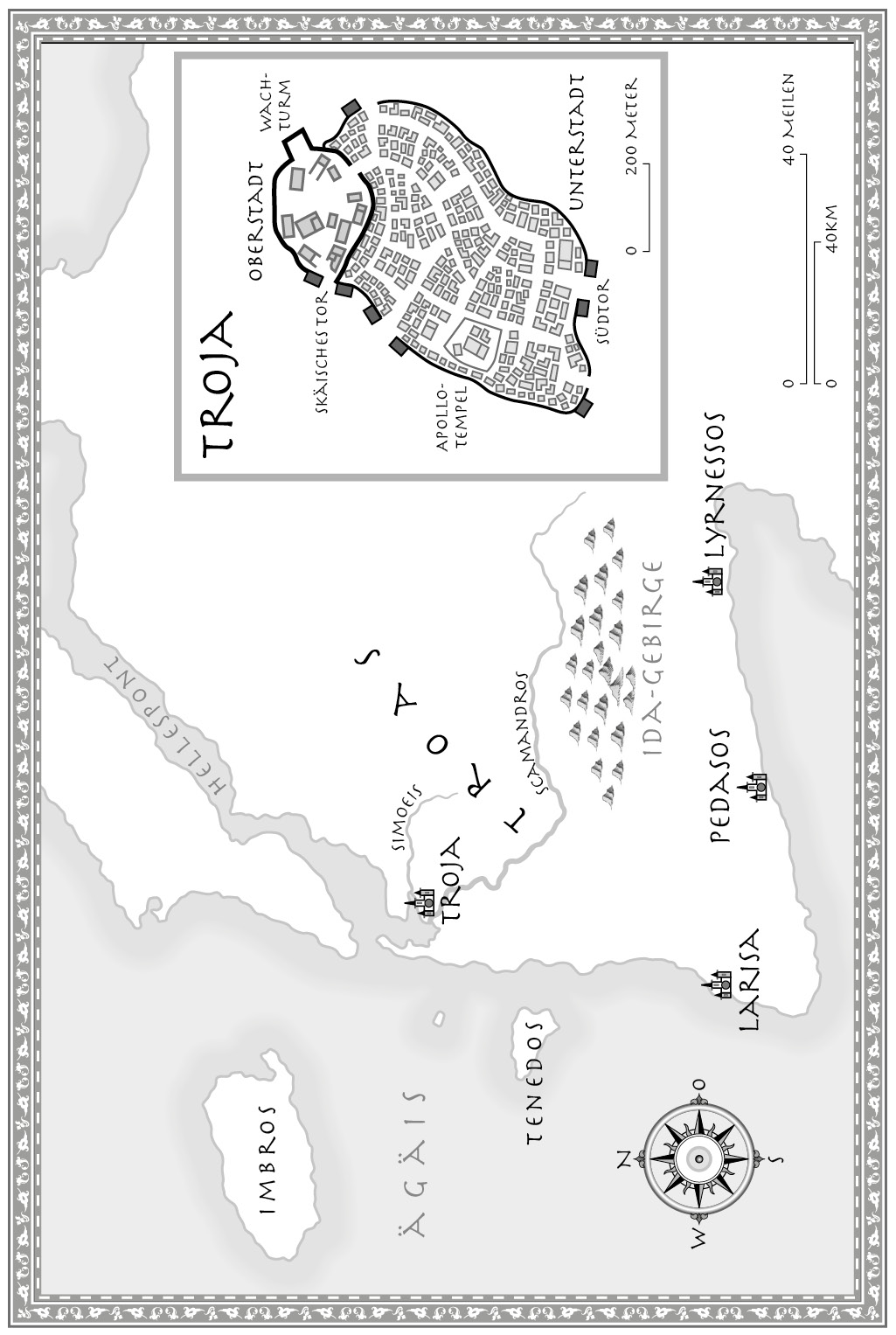 Sein verkniffener Mund und die tiefe Furche auf seiner Stirn verrieten mir seine Verärgerung. Mit seinen dunklen Augen blickte er nun Kassandra an. »Prinzessin«, sagte er und verbeugte sich so tief, dass seine lange Robe den Boden berührte und sein Lorbeerkranz – das Ehrenzeichen des Hohepriesters von Apulunas, dem Schutzgott Trojas – auf seinen schütteren grauen Haaren ein wenig nach vorn rutschte. Dann wandte er sich wieder mir zu. »Was …«, fragte er bemüht ruhig, »… was in aller Götter Namen hast du hier verloren?«
