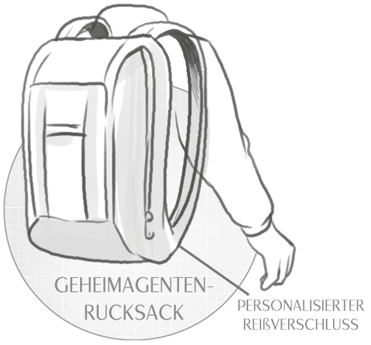 Den Rucksack hat Jack bei jeder Mission dabei. Er ist ausschließlich für Geheimagenten der Globalen Geheimen Sicherheitskräfte zugelassen. Er beinhaltet streng geheime Geräte, um die Absichten der Gegner zu durchkreuzen und dem sicheren Tod zu entkommen. Vor jeder Mission muss Jack den Rucksack mithilfe eines geheimen Codes aktivieren, den er von seiner Telefunk-Uhr bekommt. Wenn er unterwegs ist, braucht er nur den Finger auf den Reißverschluss zu legen, dann erkennt der Rucksack ihn als seinen Besitzer und öffnet sich.