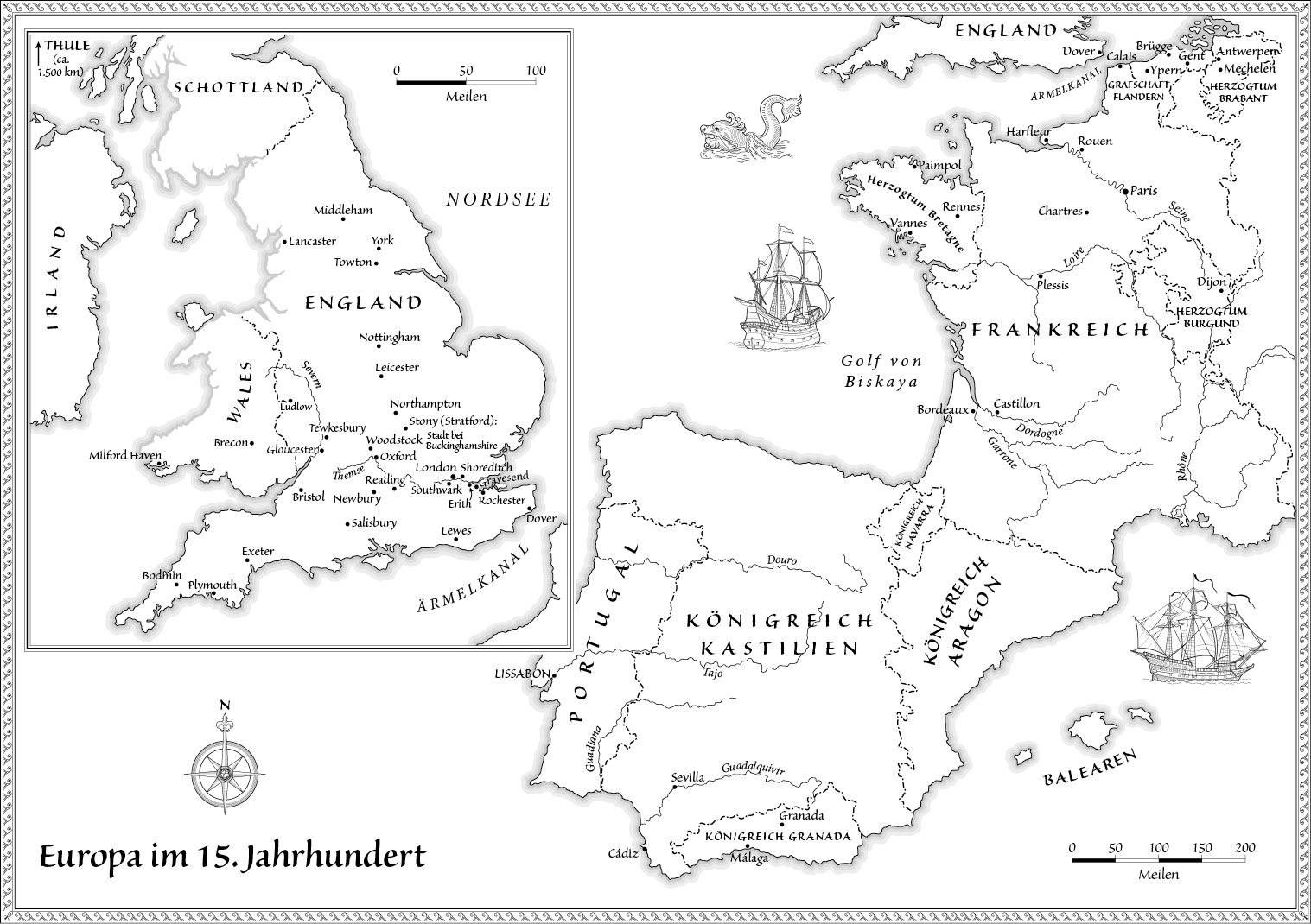 Also war er nach England zurückgekehrt, um seinen Halbbruder ausfindig zu machen, aber er war gescheitert. Jetzt befand sich die kostbare Karte höchstwahrscheinlich in den Händen von Henry Tudor, dem Harry Vaughan den Treueeid geschworen und so das Vermögen ihres toten Vaters geerbt hatte. Und der Prinz …? Jack wusste es nicht mit Sicherheit, aber sein Bauchgefühl sagte ihm, dass es für den jungen Edward und seinen Bruder, die beiden im Tower von London eingekerkerten Prinzen, schon lange keine Hoffnung mehr gab.