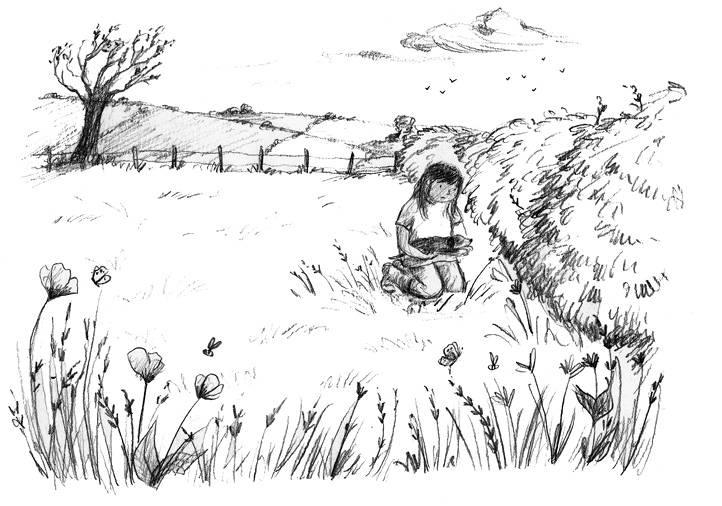 Überall brummten Insekten. Bienen summten im Klee und Schmetterlinge flatterten über Hagebutten und Waldweidenröschen. Über dem Feld nebenan kreiste ein Turmfalke, der auf Beute wartete.