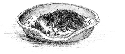 Es war ein Hund. Ein kleiner Border Collie, ein Welpe, wie es aussah. Aber kein normaler, gesunder Welpe. Es sah aus, als sei er kaum noch am Leben: die Augen waren geschlossen und unter dem glanzlosen, verfilzten Fell traten die Knochen hervor.