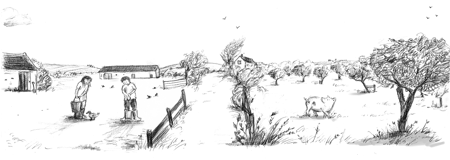 Die beiden Freunde hatten vor, später, wenn sie groß waren, zusammen eine Tierrettungsstation mit angeschlossener Tierpension zu leiten. Die Idee dazu hatten sie durch Jasmins Schweinchen Trüffel bekommen. Trüffel trottete gerade durch den Obstgarten auf sie zu, um sie zu begrüßen. Vor acht Monaten war Trüffel dem Tode nah gewesen: Ein schwächliches kleines Ferkel, das Jasmin von einer benachbarten Farm zu sich nach Hause geschmuggelt und aufgepäppelt hatte.