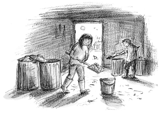 Tom kippte das Futter in den Trog, und während Trüffel ihre Mahlzeit vertilgte, kratzte Jasmin das Schweinchen hinter den Ohren.