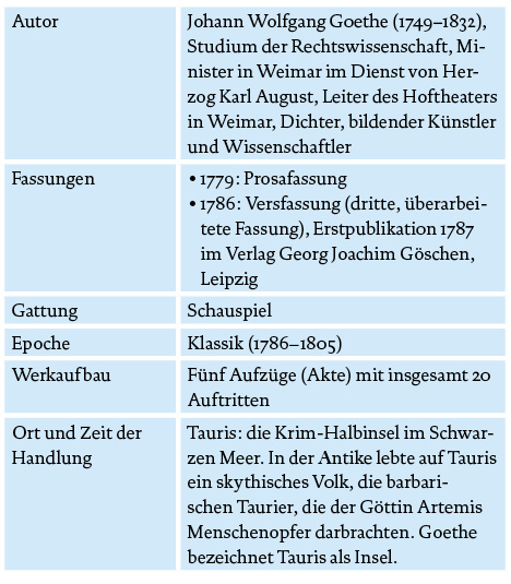 Iphigenie auf Tauris ist zwar in der Von der Antike bis ins 21. JahrhundertAntike angesiedelt, bezieht sich aber auch auf die Klassische Literaturepoche Deutschlands und berührt seine Leser auch noch im 21. Jahrhundert, weil das Stück genügend dramaturgisches Potenzial besitzt.