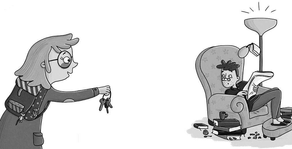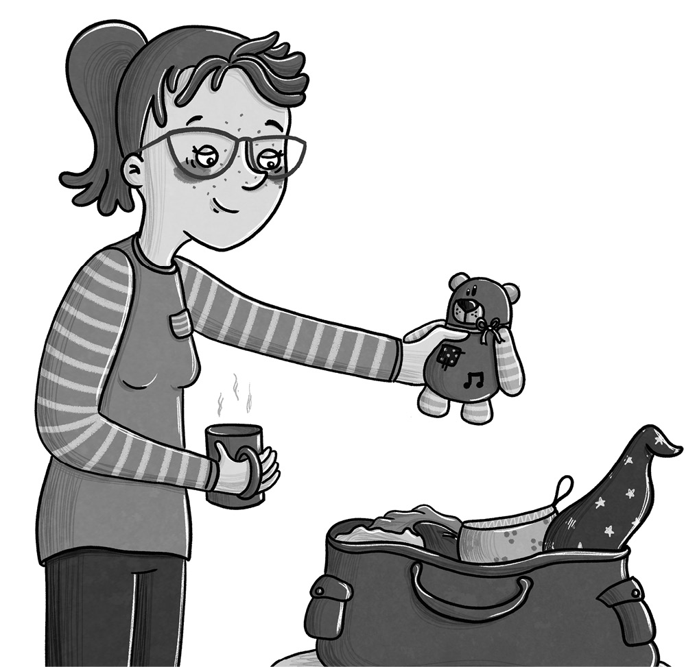 Zum Glück war Frau Rödelmeier beides: eine Langschläferin und eine Leseratte. Mit dem richtigen Buch konnte sie gut wach bleiben. Und sie hatte ein spannendes Buch entdeckt, das sie für die ganze Klasse bestellt hatte: Die magische Lesenacht. Sie konnte es selbst kaum erwarten, darin zu lesen. Aber sie wollte, dass es auch für sie eine Überraschung würde. Also legte sie ihr Exemplar in die Tasche, in die sie noch ihren Schlafanzug (sie hatte sich extra einen neuen gekauft), ihre Bürste, Zahnbürste und Zahnpasta, eine Taschenlampe, ein Fläschchen Baldrian zur Beruhigung und Mozart gepackt hatte.