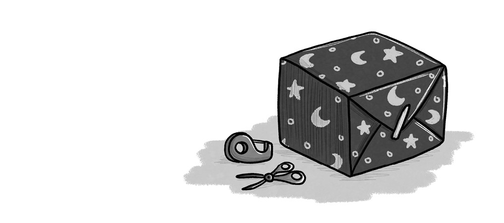 Zum Schluss nahm Frau Rödelmeier noch ihren Schlafsack, ein ziemlich hässliches, graues Ungetüm, und wollte sich schon auf den Weg in die Schule machen. Gerade rechtzeitig fiel ihr ein, dass sie noch etwas Wichtiges vergessen hatte. Rasch lief sie noch einmal zu ihrem Schreibtisch und nahm das Päckchen mit, das dort stand und das sie gestern Abend noch hübsch in Geschenkpapier eingeschlagen hatte. Jetzt aber los, dachte sie. Denn bald würde die vierzehnte Stunde anfangen, jedenfalls so ungefähr. Neunzehn Uhr. Treffen der ganzen Klasse am Schultor!