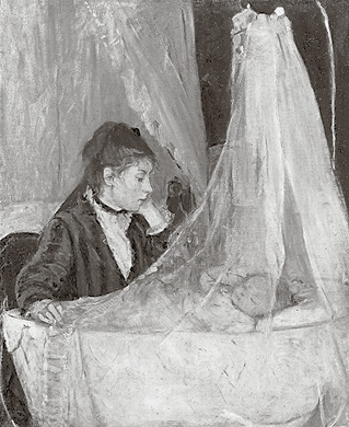 Gestern hat mir Erica, deren erstes Kind in wenigen Wochen auf die Welt kommen soll, ein Gemälde von Berthe Morisot geschickt. Sie sagte: Dieses Gemälde erinnert mich an dich. So, denke ich, sähest du aus, wenn du ein Kind hättest. Ich schrieb ihr zurück, die Frau auf dem Gemälde sehe ein bisschen gelangweilt aus, worauf sie erwiderte, die Frau sei interessiert an ihrem schlafenden Kind, und sie habe das Gefühl, das würde ich auch sein. Ich hatte es so verstanden, dass die Frau ihre Hand irgendwie achtlos, ohne nachzudenken, auf den Wiegenrand gelegt hatte. Aber Erica meinte, die Hand liege zärtlich und beschützend über dem Rand der Krippe.