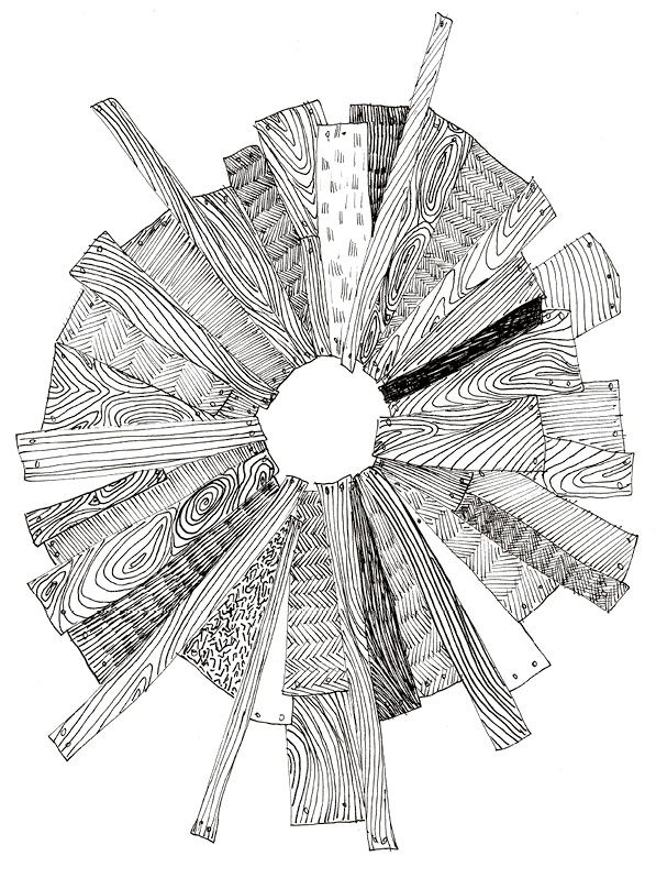 Im Sommer, rechtzeitig zum Diplom, war Erics Installation fertig geworden. Ein Konstrukt aus Holzlatten, die Eric quer in den Raum gestapelt hatte, verstellte den Weg zum Atelier. Die Holzstücke hielten ohne weitere Befestigung, lehnten nur an den Wänden. Ganz ohne Bohrung, sagte Eric stolz. Mona bückte sich unter Latten hindurch, stieg über andere hinweg, um ins Atelier zu gelangen. In der Mitte des Raumes erreichte die Konstruktion ihren höchsten Punkt, eine Art Kuppel erhob sich über Monas Kopf. Die Anordnung der Latten mit ihren regelmäßigen Abständen und sich überlagernden Winkeln ergab ein geometrisches Muster, das sich einem erst im Inneren der Kuppel erschloss. Es hatte etwas mit Mathematik zu tun und gefiel Mona.