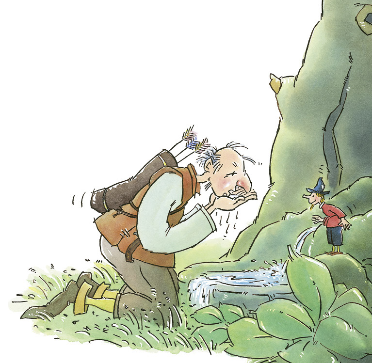 Er fand den Brunnen und trank. Einen Schluck, zwei, drei, vier, fünf … zehn Schlucke. Und mit jedem Schluck flossen neue Kräfte in seinen Körper.
