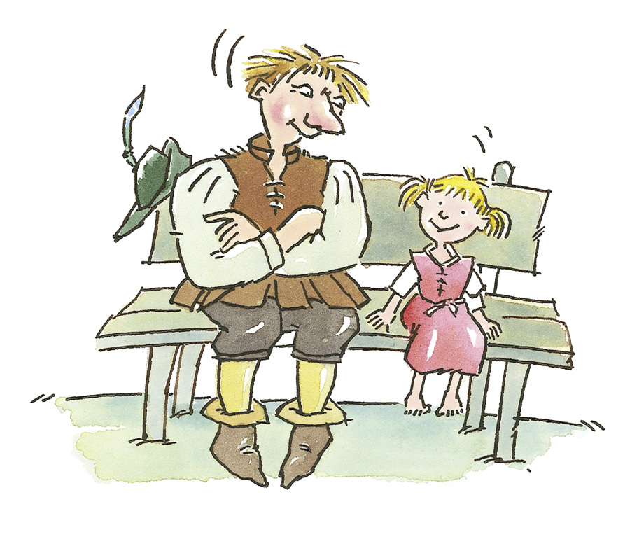 »Ich bin nicht dein Papa. Ich bin dein Mann. Jetzt muss ich warten, bis du wieder groß bist. Das wird mir aber nicht viel ausmachen. Ich werde jedes Jahr einen Schluck aus dem Jungbrunnen trinken. So werden wir in einigen Jahren wieder das gleiche Alter haben.«