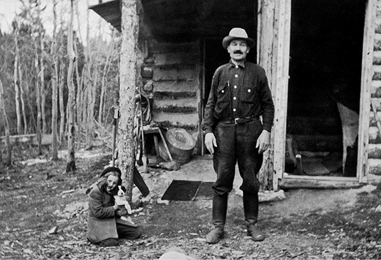 Lucia, Blue und der alte Mr. Johnson vor seiner Hütte 1941