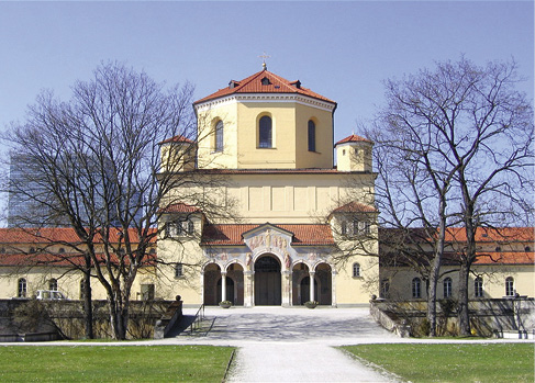 Abb. 1: Aussegnungshalle des Münchener Nordfriedhofs. – Wikimedia Commons CC BY-SA 3.0/Rufus46