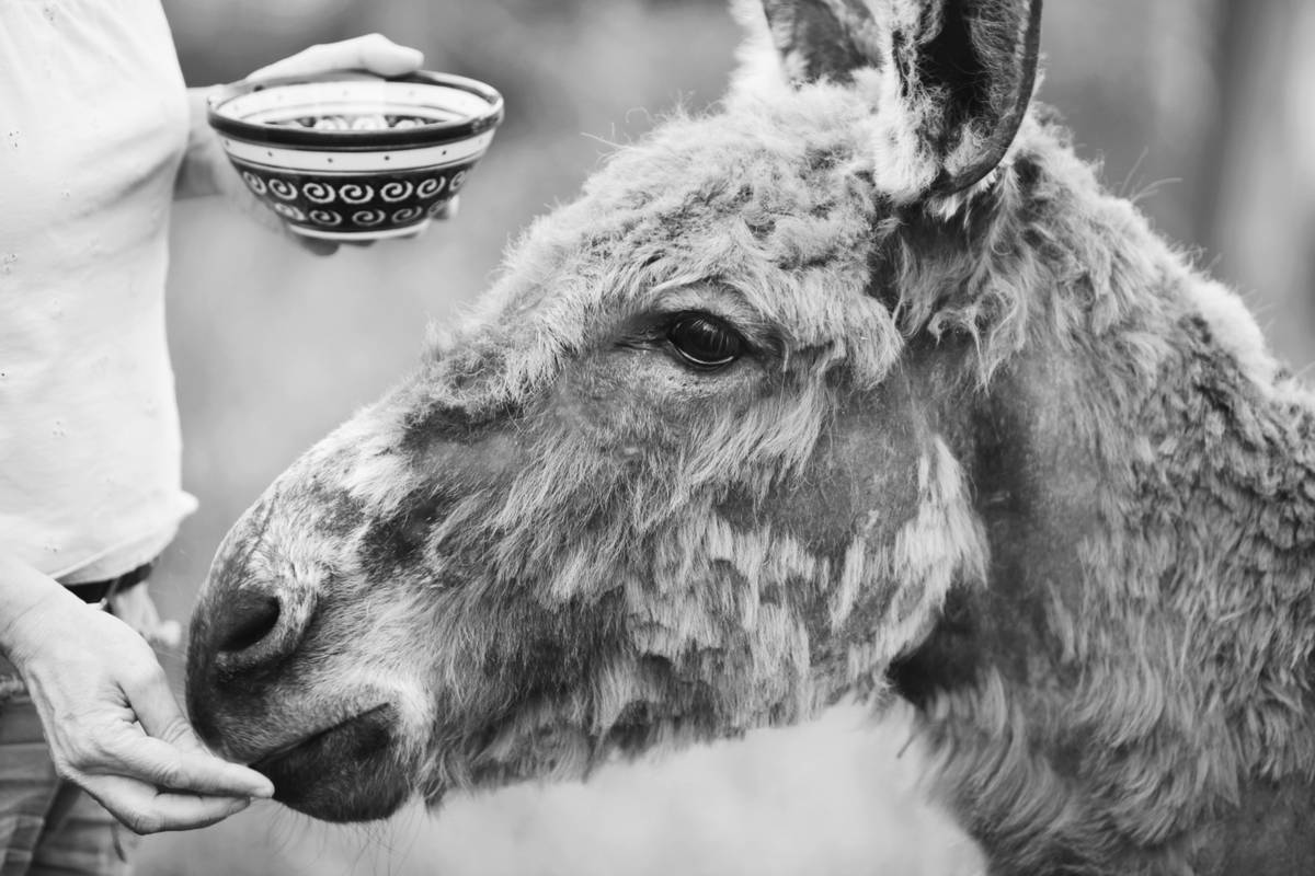 Der Tierarzt hatte gleich gesehen, dass die Hufe des Esels wie Flügel hervorstanden – es musste sehr lange her sein, dass man sie ihm das letzte Mal geschnitten hatte. »Er muss schon auf den Knöcheln gegangen sein«, sagte der Tierarzt. »So kann er nicht bis zum Anhänger laufen. Ich muss ihm die Hufe an Ort und Stelle schneiden.«