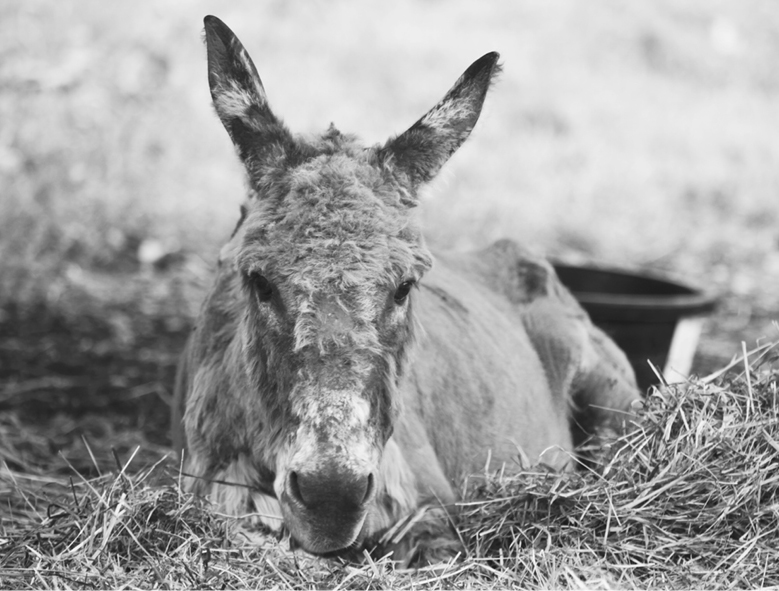 Carol war bereits an die zwanzig, als ich sie kennenlernte. Sie lebte in einem kleinen Pferch. Wie so viele Esel schien sie eine Art übrig gebliebenes Anhängsel zu sein, ein Sonderling. Esel gelangen aus allen möglichen Gründen auf eine Farm. Mal tauscht sie jemand für ein altes Pferd ein oder für etwas Heu. Mal läuft ein Farmer einem solchen Tier über den Weg und wird von Mitleid erfasst oder denkt, irgendwann könne ihm dieser Esel noch nützlich sein.