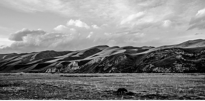 In alle vier Himmelsrichtungen erstreckt sich ein knotiger grüner Teppich und markiert die Konturen der Hügel und Hänge. Auf den Hochglanzfotos der Tibet-Bildbände ist der Himmel stets strahlend blau, aber während meiner Besuche, die meist in den Frühling fielen, waren die Wolken dick wie Wattebäusche und hingen so tief, dass sie die Berggipfel umhüllten. Die Dörfer an der Straße sind Ansammlungen flacher Lehmhäuser, und zottelige Yaks und Schafe ignorieren die wenigen vorbeirollenden Autos. Ausgesuchte Stellen sind für Opfer an die Gottheiten vorgesehen, die, wie die Tibeter glauben, alle Anhöhen und Bergpässe ihres Landes bewohnen. Auf den Kämmen flattern zu blassen Pastellfarben ausgeblichene Gebetsfahnen.