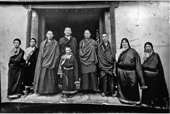 Die Königsfamilie von Ngaba, 1957. Gonpo steht vorn in der Mitte, direkt vor ihrem Vater, dem König.