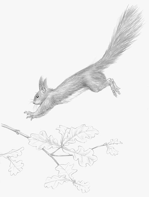Das Eichhörnchen, ein Meister im Sprung von Ast zu Ast mit günstigem Verhältnis zwischen Körpergewicht und Sprungkraft.
