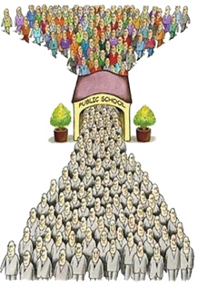 «Wenn Sie sich optimal entwickelt hätten, dann hätten Sie Ihr Potenzial voll zur Entfaltung gebracht. In der Regel haben Sie sich nicht optimal entwickelt. Da ist was dazwischengekommen, das nennen wir Erziehung. Und so hat man Sie normal gemacht. Einen großen Teil der Schuld an dem trägt die Erziehung durch die Schule.»